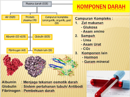 1. Albumin: berfungsi menjaga tekanan osmotik darah sehingga tekanan darah dapat normal dan cairan darah tidak merembes keluar menuju ke jaringan disekitarnya