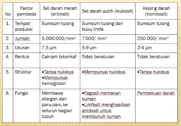 Perbedaan antara ketiga sel darah tersebut dapat kita pelajari pada tabel berikut ini: