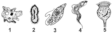 Protozoa yang tergolong kelompok Rhizopoda dan Ciliata berturut-turut ditunjukkan oleh nomor….
