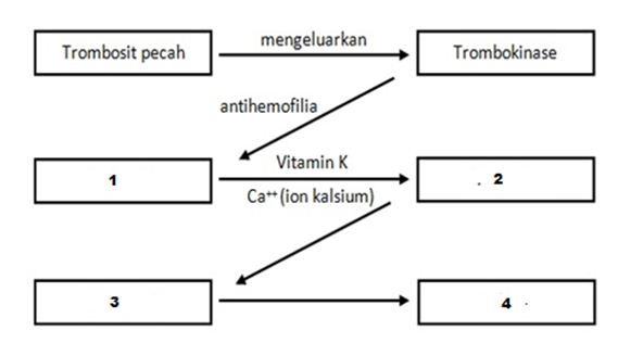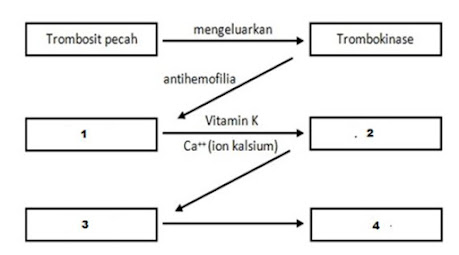 Pada bagan pembekuan darah berikut nomor 1 dan 3 berturut-turut adalah….