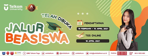 SMB Telkom University membuka Jalur BEASISWA yang ditujukan bagi siswa SMA / SMK / MA di seluruh Indonesia. Jalur Beasiswa merupakan jalur seleksi melalui tes online.