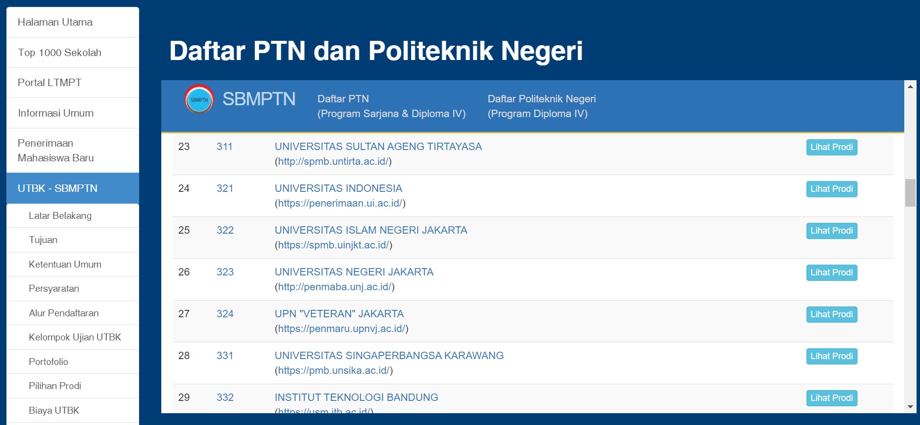 Semisal kalian ingin mengercek rasio di UNJ untuk SBMPTN untuk program studi Pendidikan Biologi (Nah ini prodi favorit lho tempat dulua admin menuntut ilmu, dosennya keren keren luar biasyah) klik kampus Universitas Negeri Jakarta, kemudian pilih lihat prodi dan klik pada Prodi Pendidikan Biologi