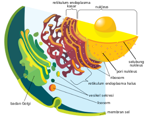 Retikulum Endoplasma (RE) merupakan saluran halus yang membentang dari nukleus hingga ke membran. Memiliki fungsi sebagai sistem angkut/transpor pada sel. Terdapat dua jenis RE yaitu RE kasar dan RE halus. Pada RE kasar terdapat organel ribosom yang berfungsi sebagai lokasi sintesis protein