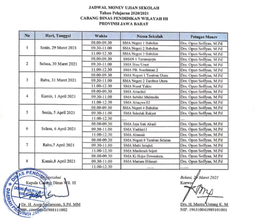 Gambar 1. Jadwal Monitoring dan Evaluasi Ujian Sekolah Drs. Opan Soffian, M.Pd.