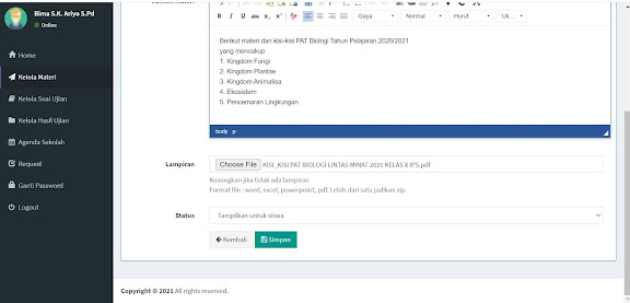 4. Lampirkan file dalam bentuk PDF, Gambar, dan lain sebagainya pada menu lampiran yang dapat di download oleh siswa siswi