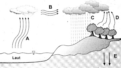 Pada daur hidrologi tersebut proses kondensasi pada awan terjadi pada huruf