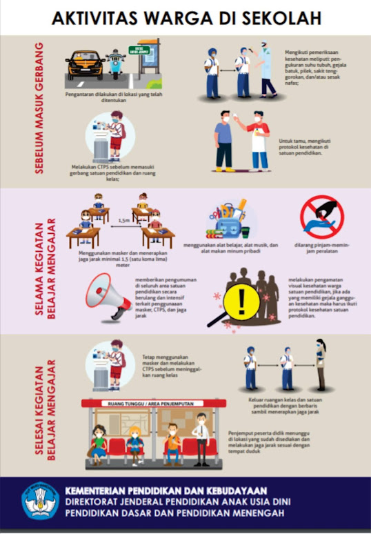 Pedoman penyelenggaraan pembelajaran tatap muka terbatas di era pandemi Covid-19 telah disusun oleh Kementrian Pendidikan, Kebudayaan, Riset, dan Teknologi. Pedoman-pedoman ini wajib kita kaji dengan seksama sebagai pegangan saat melaksanakan Pembelajaran Era Pandemi apalagi menjelang tatap muka terbatas yang akan digelar bulan Juli nanti di berbagai daerah yang sudah memperoleh izin dan terkondisikan dalam zona hijau/kuning kaitannya dengan status pandemi.