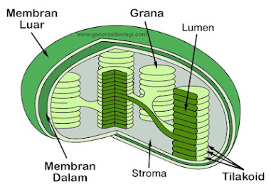 1. Grana/tumpukan memberan tilakoid: tempat berlangsungnya rekasi terang