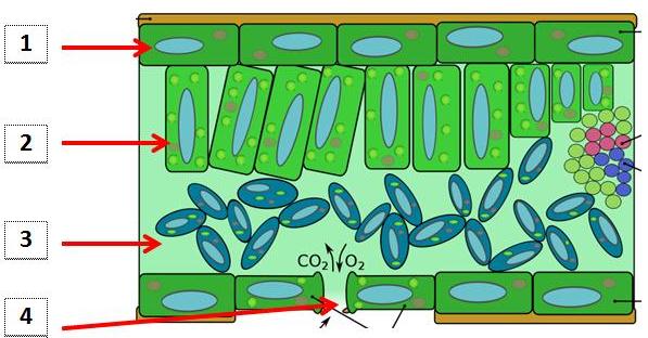 Pada organ tersebut jaringan epitel dan parenkim palisade ditandai oleh nomor….