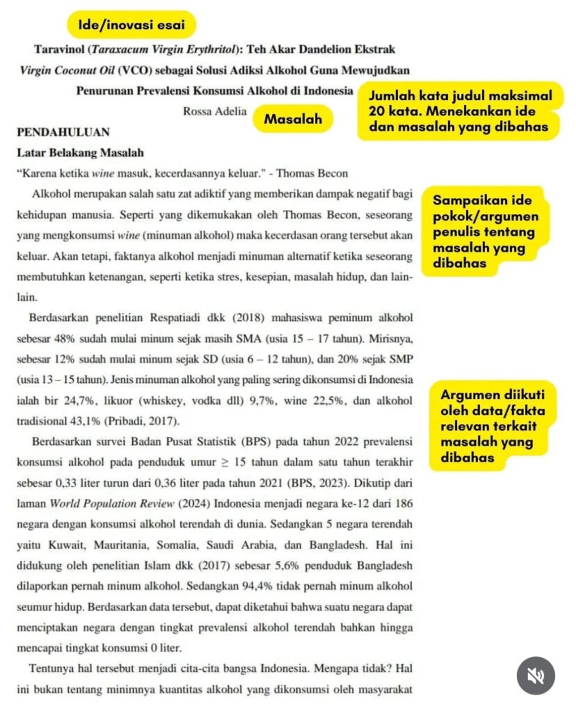 Untuk contoh ESAI pemenang lomba ESAI bidang kesehatan kamu bisa membaca esai yang keren karya kak Rossa Adelia, Pemenang Juara 1 Lomba Esai Kedokteran tingkat Nasional di UMY berikut ini!