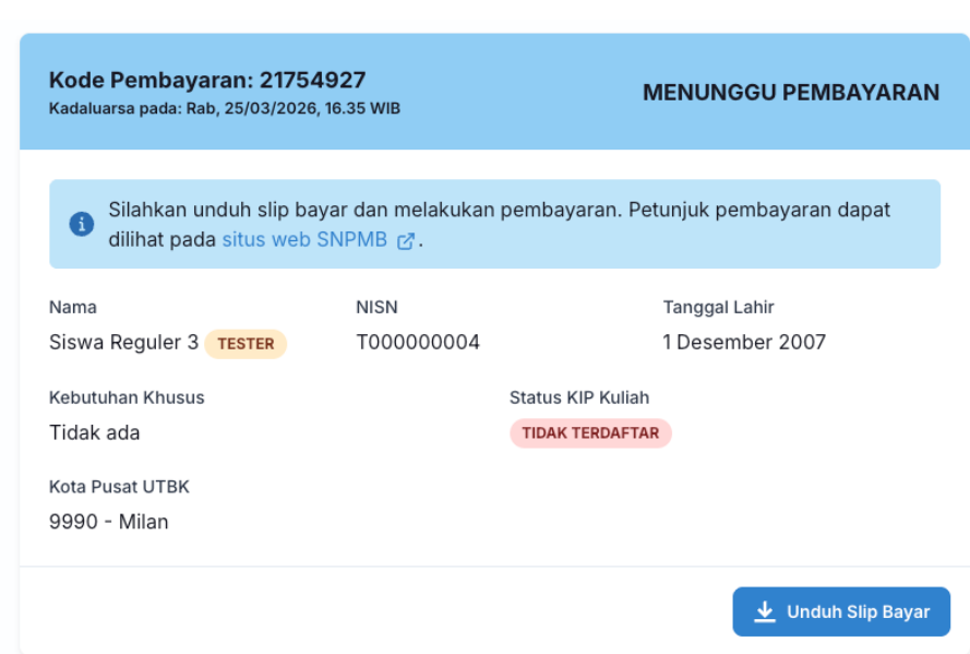 - Masa Pembayaran Biaya UTBK berlangsung dari 25 Maret hingga 08 April 2026.