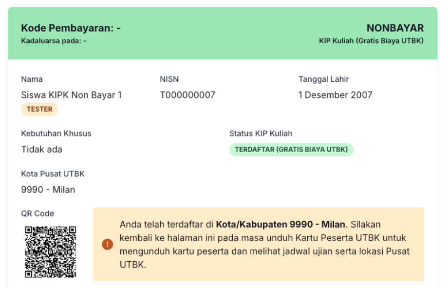Kabar gembira bagi kalian yang berasal dari keluarga kurang mampu, status biaya UTBK bisa menjadi gratis (Rp0) sesuai dengan PMK Tarif Nomor 123 Tahun 2024 bagi pemegang Kartu Indonesia Pintar (KIP) Kuliah. Oleh karena itu, pastikan status pendaftaran KIP Kuliah kalian sudah terdata dengan benar di sistem kementerian.