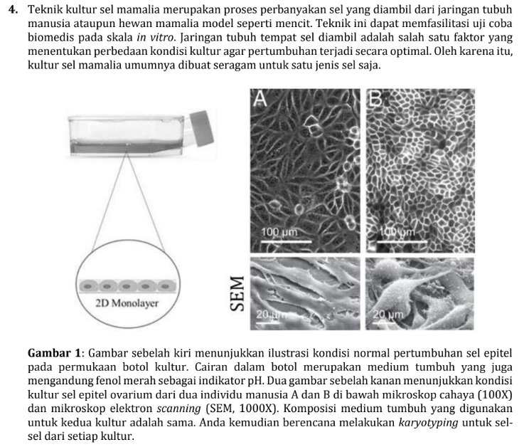 Soal ini sangat menarik karena menggabungkan teknik bioteknologi (cell culture) dengan fisiologi seluler dan metabolisme. Kunci utama untuk menjawabnya adalah melakukan perbandingan visual antara Kultur A dan Kultur B.