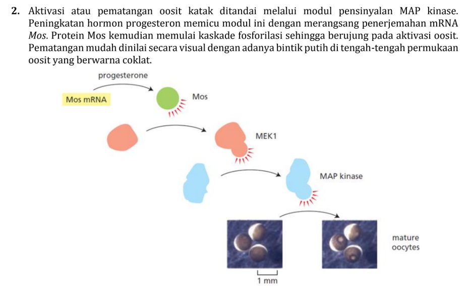 - MAPK (paling bawah) mengeksekusi respon seluler (dalam hal ini aktivasi oosit).