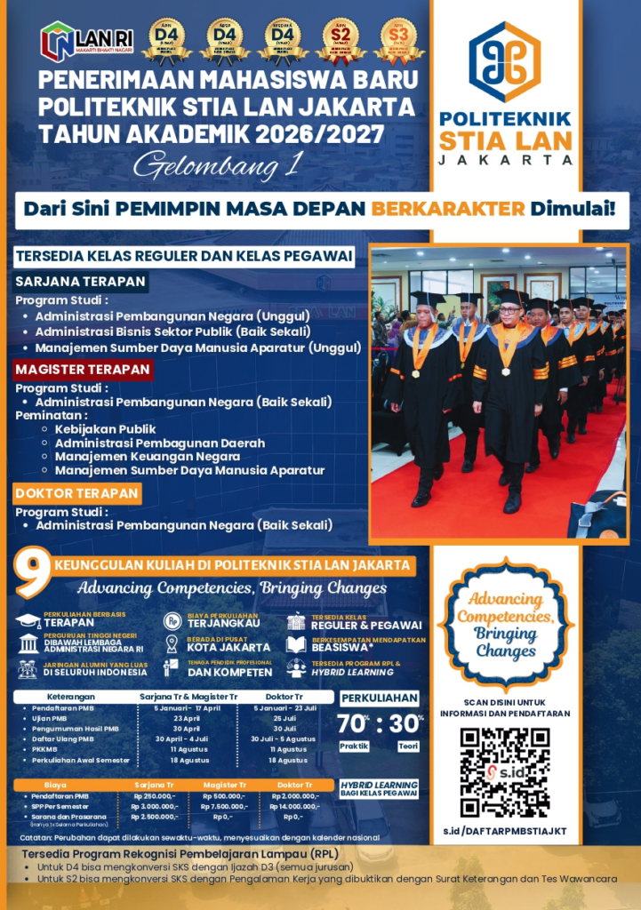 Saat ini, Politeknik STIA LAN Jakarta telah membuka Penerimaan Mahasiswa Baru (PMB) Gelombang 1 untuk Tahun Ajaran 2026/2027. Yuk, kita bedah tuntas profil lulusan, jalur pendaftaran, hingga rincian biayanya!